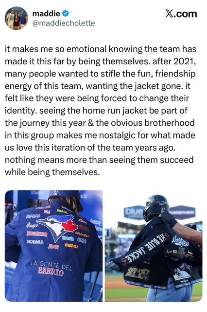 The Blue Jays showed what positive masculinities, true love for your brothers and teammates, and being resilient is all about for men and boys everywhere. Fell short but inspired millions, and made many new baseball fans across the land.