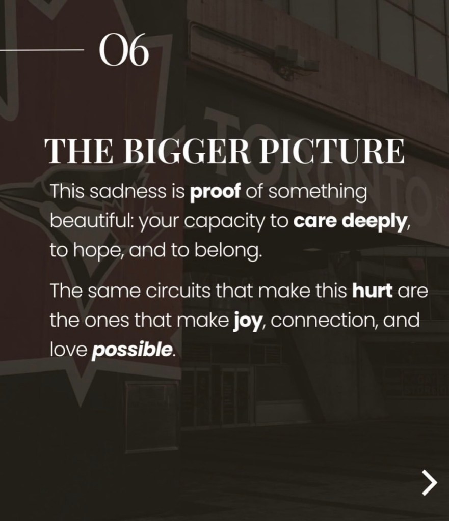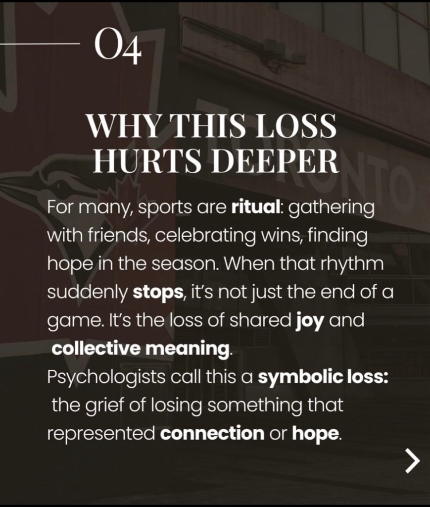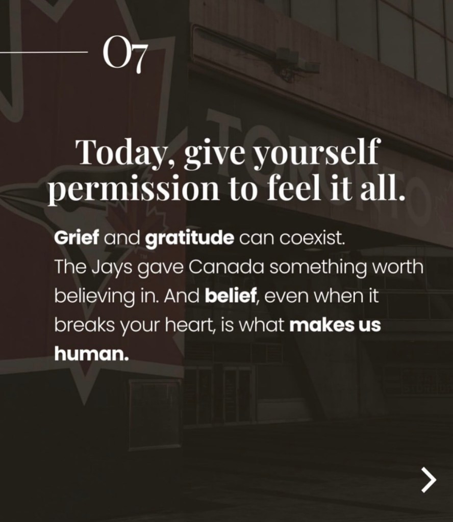 This is a helpful series of Instagram slides from VOX Mental Health for Blue Jays fans on navigating grief. Lessons that can be applied in many of our everyday moments and endeavors.