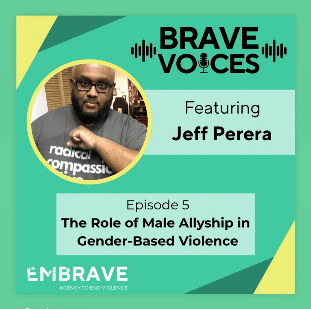 Jeff also had the opportunity to join Luxana Ramesh in conversation on Embrave’s ‘Brave Voices’ podcast. They covered a variety of topics including the inner reflection as part of our ongoing journey as men striving to be an ally to help end gender-based violence.