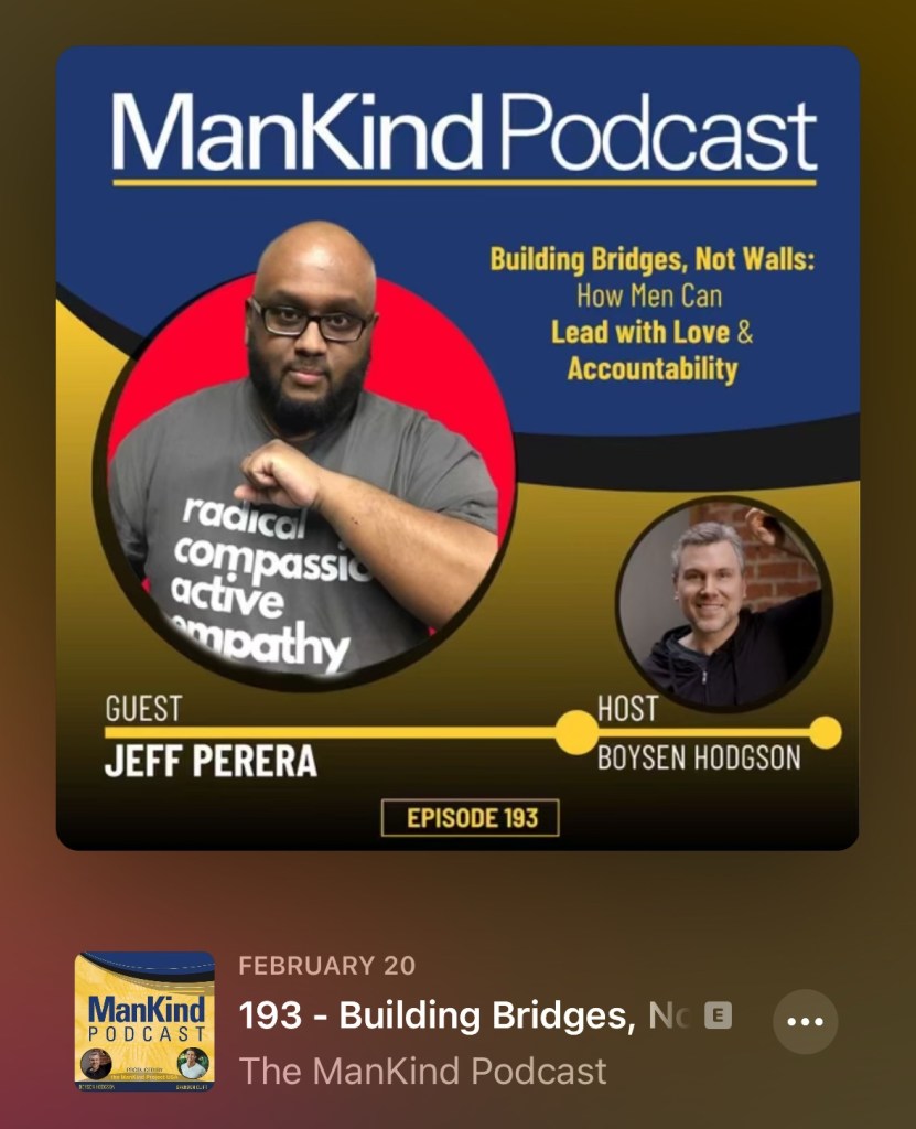 “Jeff Perera is leading the field in conversations on manhood and gender based violence and in today’s discussion we get down to the root of it, with a lot of laughter on the way… he is a master of using analogies to make complex ideas and topics very relatable and understandable. We talk about the origins of manhood as it is traditionally defined, how mansculinty has a direct impact on people of other genders, and the environments that this creates; in relationships, with self, with others, and in the workplace. And maybe most importantly, we talk about building our empathy muscles.”